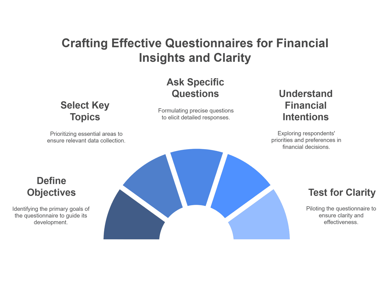 Why It's Effective: Unlike transactional or behavioral data, questionnaires can capture qualitative insights that reveal a customer’s true financial intentions and preferences. For instance, understanding financial goals and risk tolerance helps in designing tailored products and services. When building questionnaires, it’s essential to balance detail with user experience, ensuring that questions are clear and easy to answer.