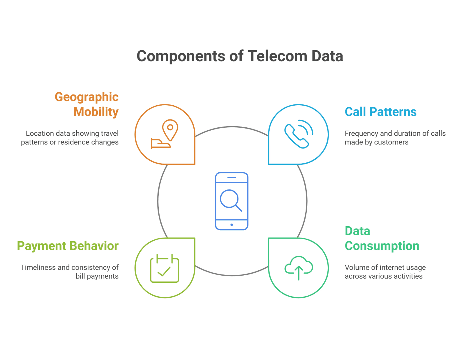 What It Is: Telecom data includes information about a customer’s mobile usage, such as call patterns, data consumption, payment behavior, and geographic mobility.
