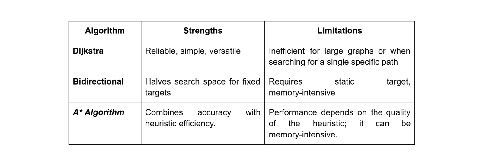 Balances Accuracy and Speed: Combines the thoroughness of Dijkstra’s Algorithm with the efficiency of heuristic-based guidance.